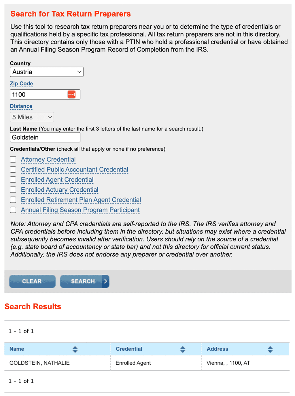 In addition, Nathalie Goldstein (CEO) is an IRS Enrolled Agent. You can search for her official listing here.
